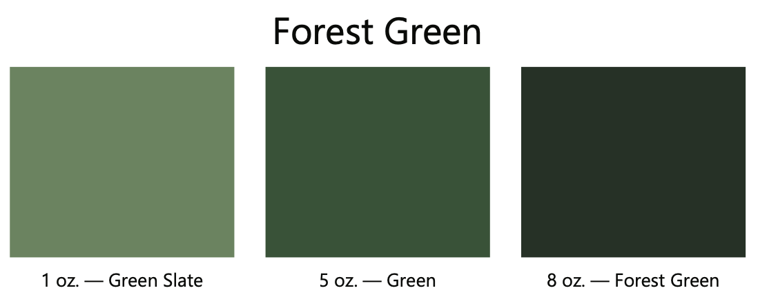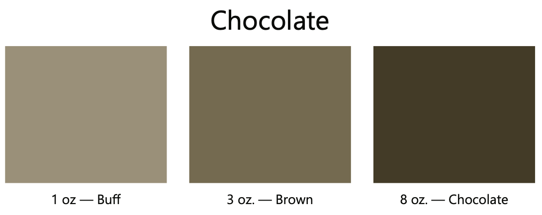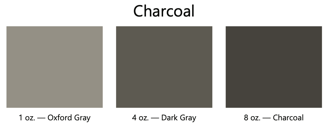 • Portion Control Colorants are used with cementitious overlays. The colors on this chart are represented as closely as possible. Variations should be expected due to differences in substrate condition, thickness of application, speed of curing, blending of colors, application method and color of initial primer coat.