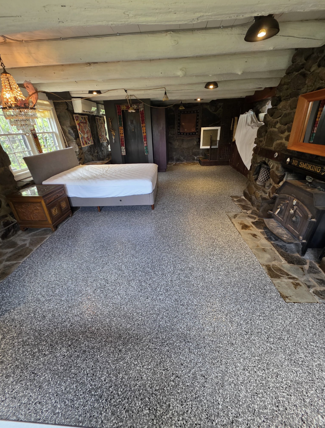 Durable, seamless, chemical resistant floor providing adjustable levels of slight texture and color to match any design theme or surroundings.